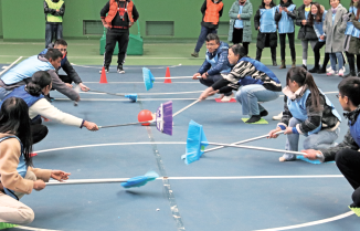 本屆運(yùn)動(dòng)會(huì)除了“觀山長(zhǎng)跑”,還設(shè)立了“接力五子棋”、“山寨曲棍球”、“高蹺接力往返跑”、“乒乓球運(yùn)送”等項(xiàng)目?!敖恿ξ遄悠濉本o張、“山寨曲棍球”激烈、“高蹺接力往返跑”熱鬧、“乒乓球運(yùn)送”刺激。身處賽場(chǎng),哪怕你是站在一旁的拉拉隊(duì)、裁判,也會(huì)融入這熱烈的氛圍當(dāng)中,看著運(yùn)動(dòng)員們認(rèn)真努力、奮力拼博的姿態(tài),你也會(huì)動(dòng)容。有人臉上掛著不輸給專(zhuān)業(yè)運(yùn)動(dòng)員的認(rèn)真神情,有人緊張得攥緊了一對(duì)小拳頭,有人聲嘶力竭的為運(yùn)動(dòng)員加油,有人為順利抵達(dá)終點(diǎn)的隊(duì)員歡呼雀躍……