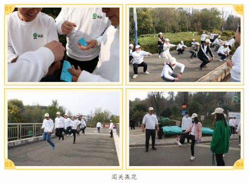 闖關集花——共設置4個關卡。關卡1:石頭剪刀布(闖關人員和守關者PK,一拳定輸贏,勝利者守關人戳一枚印花,敗者繼續(xù))。關卡2:連續(xù)下蹲15個,得一枚印花。關卡3:協(xié)作跳繩(自行組隊10人,一同跳長繩,2人搖繩,其余8人連續(xù)跳過10個闖關成功,整組人各得一枚印花)。關卡4:踢毽子(單人連續(xù)踢5個以上;多人組合要求人數(shù)5人以上,每人至少踢1個,闖關成功)。